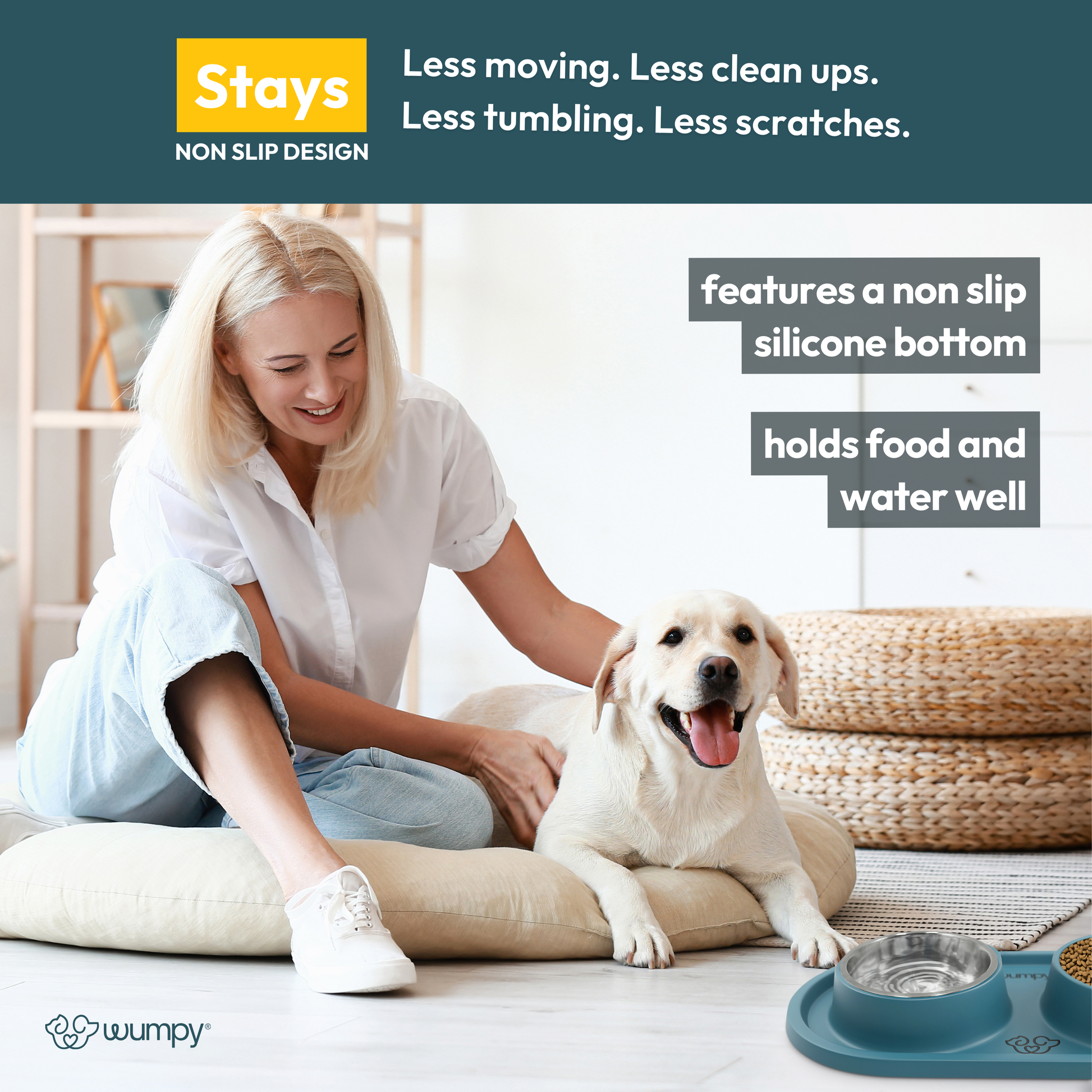 The Wumpy Bowl is a premium dog bowl and slow feeder combo made with a polished stainless steel bowl and a food-safe, foldable silicone base with non-slip grips. It's designed to support better digestion, reduce choking, and make mealtime healthier for your dog.